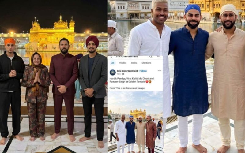 In one image, cricketer Yuvraj Singh is shown bareheaded, and in another, Hardik Pandya appears without a head covering. According to Sikh religious practices, covering one’s head is mandatory when entering Gurdwara premises.