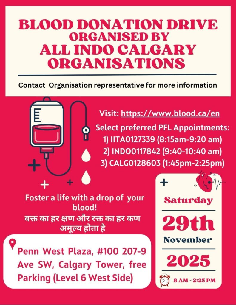Calgary (Rajeev Sharma ): In a powerful demonstration of unity and compassion, several Calgary based community organizations have joined forces to organize a Massive Blood Donation Drive aimed at saving lives and fostering community spirit.