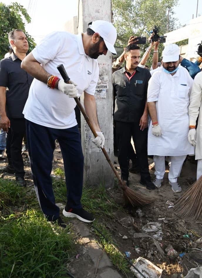 On Thursday morning, the Chief Minister joined a mega cleanliness drive under the Haryana City Sanitation Campaign at Sohna Chowk and Sector 52 in Gurugram. He personally participated in the cleaning effort along with sanitation workers, setting an example and encouraging citizens to adopt cleanliness as a way of life. Gurugram MLA Mukesh Sharma and Sohna MLA Tejpal Tanwar were also present during the campaign.