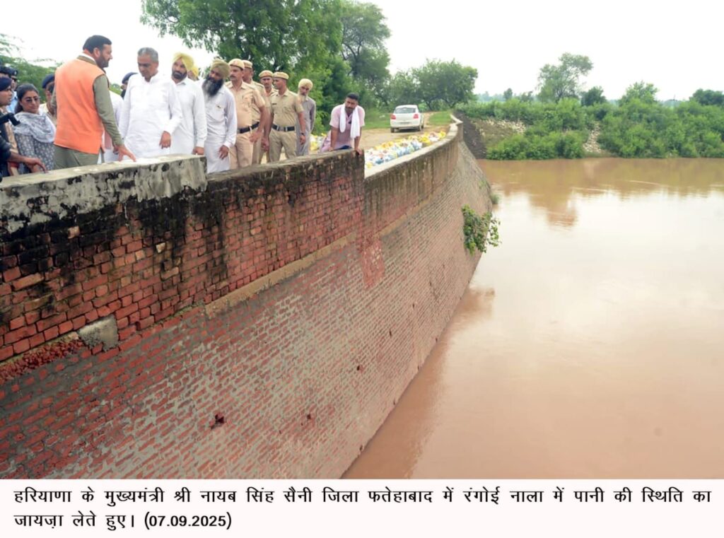 Former minister Aseem Goyal briefed the CM that the entry of Tangri river water and rainwater into the Naggal drain (locally known as Ganda Nala) had led to a sharp rise in water levels, affecting around 40 villages. The Deputy Commissioner informed that nearly 28,000 acres of farmland under Ambala city tehsil were submerged due to the flooding.