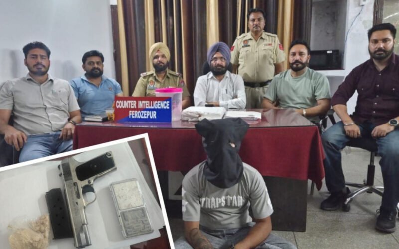 Gurpreet Singh :- In a significant breakthrough, the Counter Intelligence Unit of Ferozepur arrested a suspect and recovered 101 grams of heroin along with a foreign-made .30 bore pistol, a magazine and a mobile phone. Acting on specific intelligence inputs, the police carried out a targeted operation leading to the arrest.