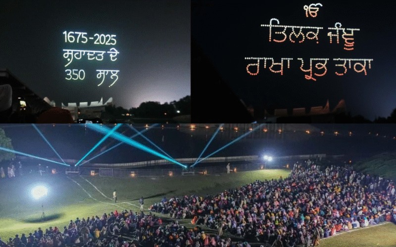 Anandpur Sahib, November 25, 2025: History was created in Anandpur Sahib when the Punjab Government organized the world’s first religious drone show to mark the 350th martyrdom anniversary of Guru Tegh Bahadur Ji. More than fifty thousand devotees and guests gathered to witness this unique tribute, remembering the Ninth Sikh Guru’s supreme sacrifice in an extraordinary way.