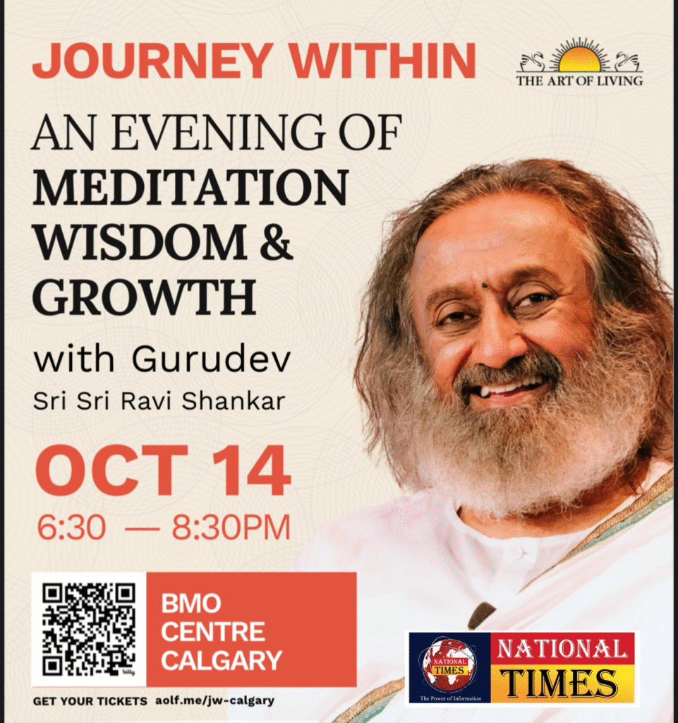 She stated that Gurudev, a globally celebrated teacher of peace, meditation, and human values, has touched the lives of millions across more than 180 countries. His upcoming visit to Calgary is expected to draw a diverse audience seeking to experience his wisdom, guided meditation, and uplifting presence.