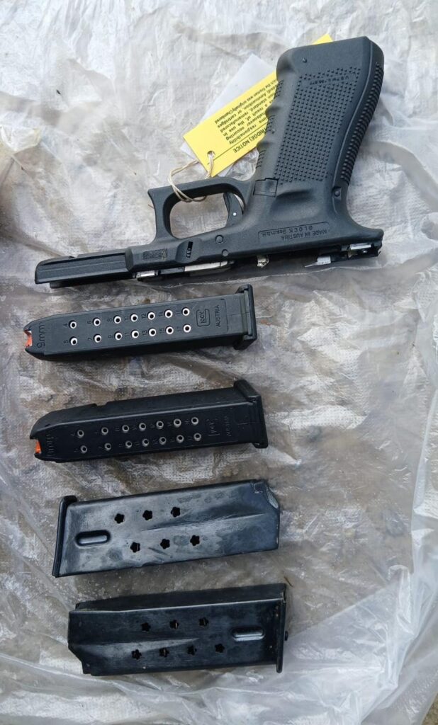 a) In the early morning today, the BSF troops carried out a search operation, which culminated in the recovery of 01 packet containing the upper body of a pistol and 04 magazines wrapped in yellow adhesive tape with an iron ring and a torch attached to it. This recovery took place from a waterlogged paddy field adjacent to the village of Wan.