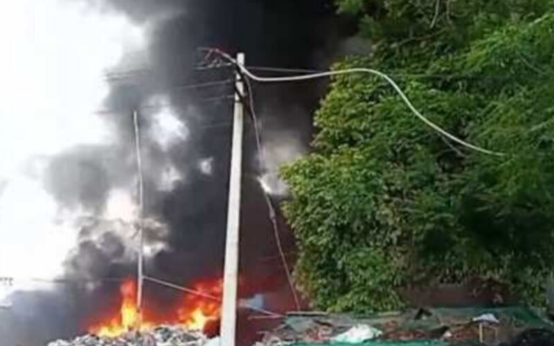 Gurpreet Singh :- A massive fire broke out at a scrap warehouse on Kala Singha Road in Kadiana village, under the western constituency of Jalandhar, causing widespread panic and significant property loss. Several motorcycles and large quantities of scrap material were completely destroyed in the blaze.