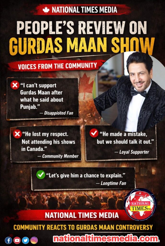 While some longtime fans continue to respect Gurdas Maan’s decades-long contribution to Punjabi music, the situation has created a noticeable divide in the community. For the first time in many years, the singer’s Canada tour is being met with mixed reactions instead of the overwhelming support he once enjoyed among the Punjabi diaspora, and some community members have even said they will no longer promote his shows.