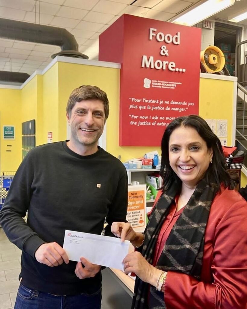 Ottawa ( Rajeev Sharma ): Mrs. Poonam Patnaik, wife of Mr. Dinesh Patnaik, High Commissioner of India to Canada, has generously donated CAD 1,000 to support the Ottawa Food Bank, reaffirming her strong commitment to community service and social responsibility.
