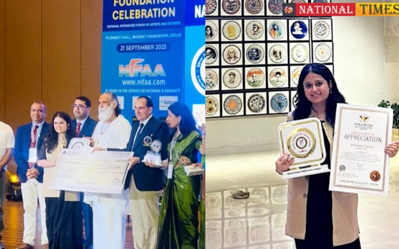 New Delhi, September 25, 2025: Punjab’s Manmeet Kaur earned national and international recognition by winning the World Record of Excellence – England at the NIFAA Silver Jubilee National Convention held at Bharat Mandapam, New Delhi, from September 21-24. In addition, she received the State Champion of Change Award and the District Young Community Champion Award for her remarkable contributions in the field of psychology.