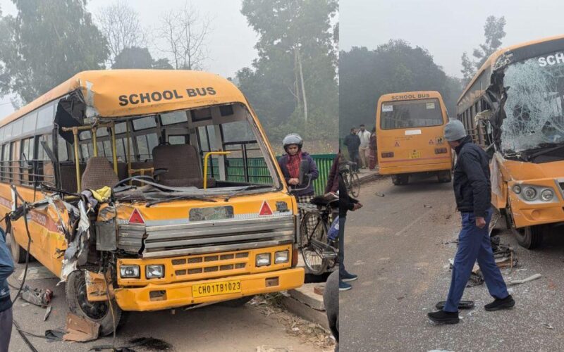 National Times Bureau :- Dense fog and extremely low visibility triggered massive road traffic disruptions. Two school buses collided on the Chandigarh highway near Kurali in Mohali on Thursday morning due to dense fog. One bus was coming from Kurali, while the other was heading towards Kurali on the wrong side, leading to the collision. Five people, including the drivers of both buses, were injured in the accident and were immediately rushed to the hospital.